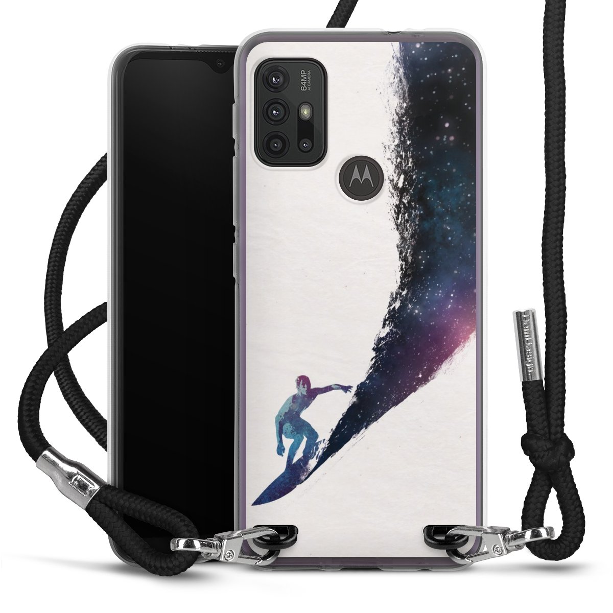 Keep your phone handy at all times, thanks to the flexible silicone case with a textile strap.