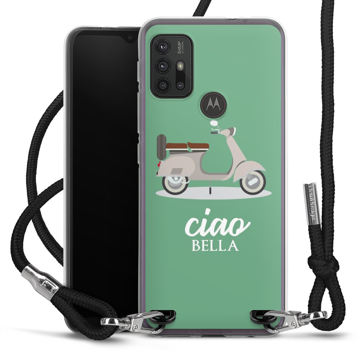 Keep your phone handy at all times, thanks to the flexible silicone case with a textile strap.