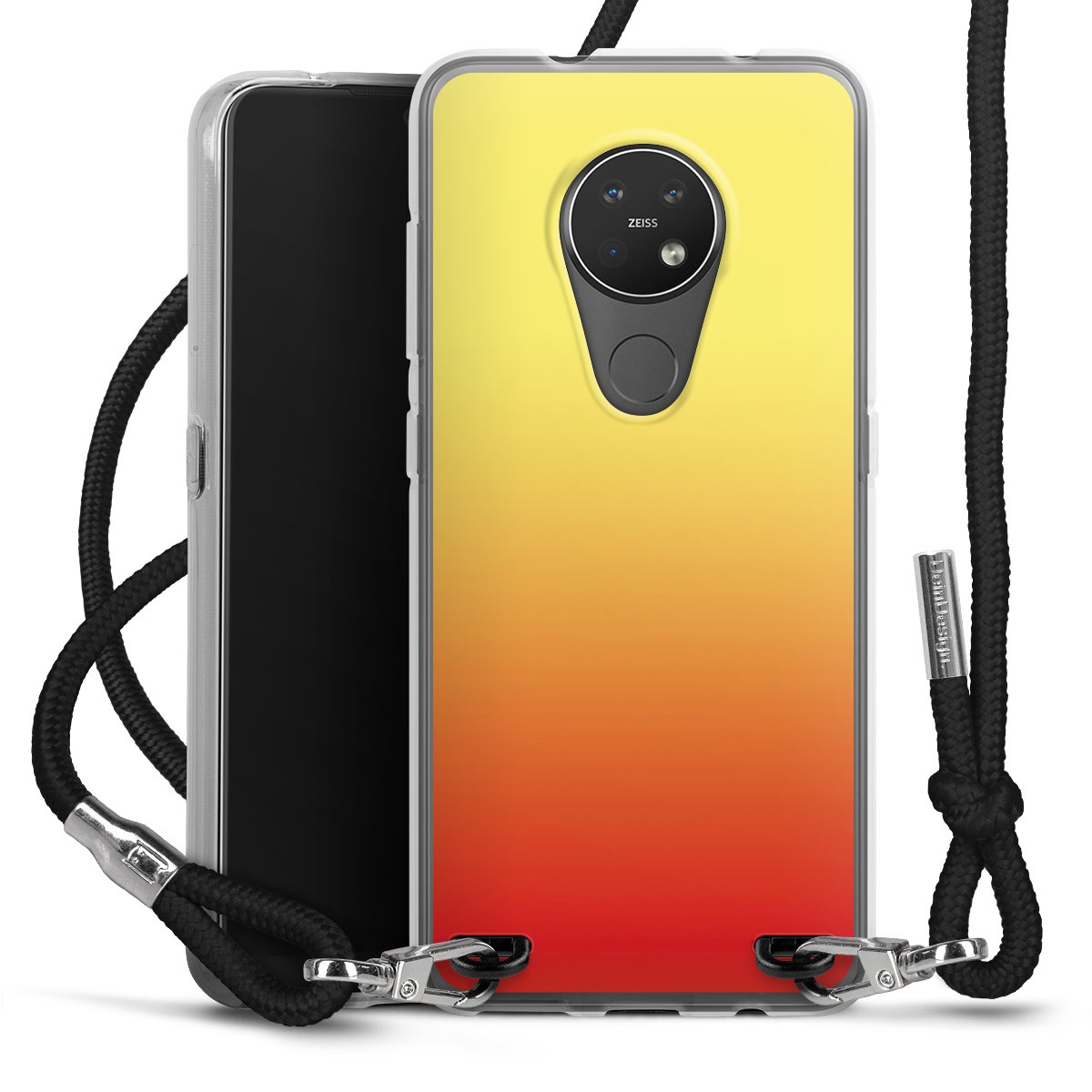 The flexible case is made from a high quality TPU material (thermoplastic Polyurethan). Thanks to its long-lasting and break resistant characteristics, the case is flexible yet consistent in form and has a great grip and feel. The textile strap made from Polyester gives a chic yet casual accent allowing you to carry your phone like a bag or necklace - a practical gadget perfect for your next adventure. The textile strap is about 1.70 meters long and the length can easily be adjusted through the knots. Our Carry Case is available in black, red, pink, grey, mustard, dark green and royal blue. We added a metal fastening to give the product an elegant touch. The ends of the textile strap are covered with metallic end caps to protect them against fraying.