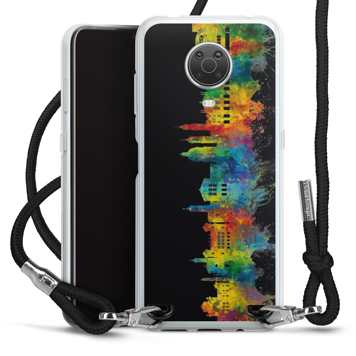 The flexible case is made from a high quality TPU material (thermoplastic Polyurethan). Thanks to its long-lasting and break resistant characteristics, the case is flexible yet consistent in form and has a great grip and feel. The textile strap made from Polyester gives a chic yet casual accent allowing you to carry your phone like a bag or necklace - a practical gadget perfect for your next adventure. The textile strap is about 1.70 meters long and the length can easily be adjusted through the knots. Our Carry Case is available in black, red, pink, grey, mustard, dark green and royal blue. We added a metal fastening to give the product an elegant touch. The ends of the textile strap are covered with metallic end caps to protect them against fraying.