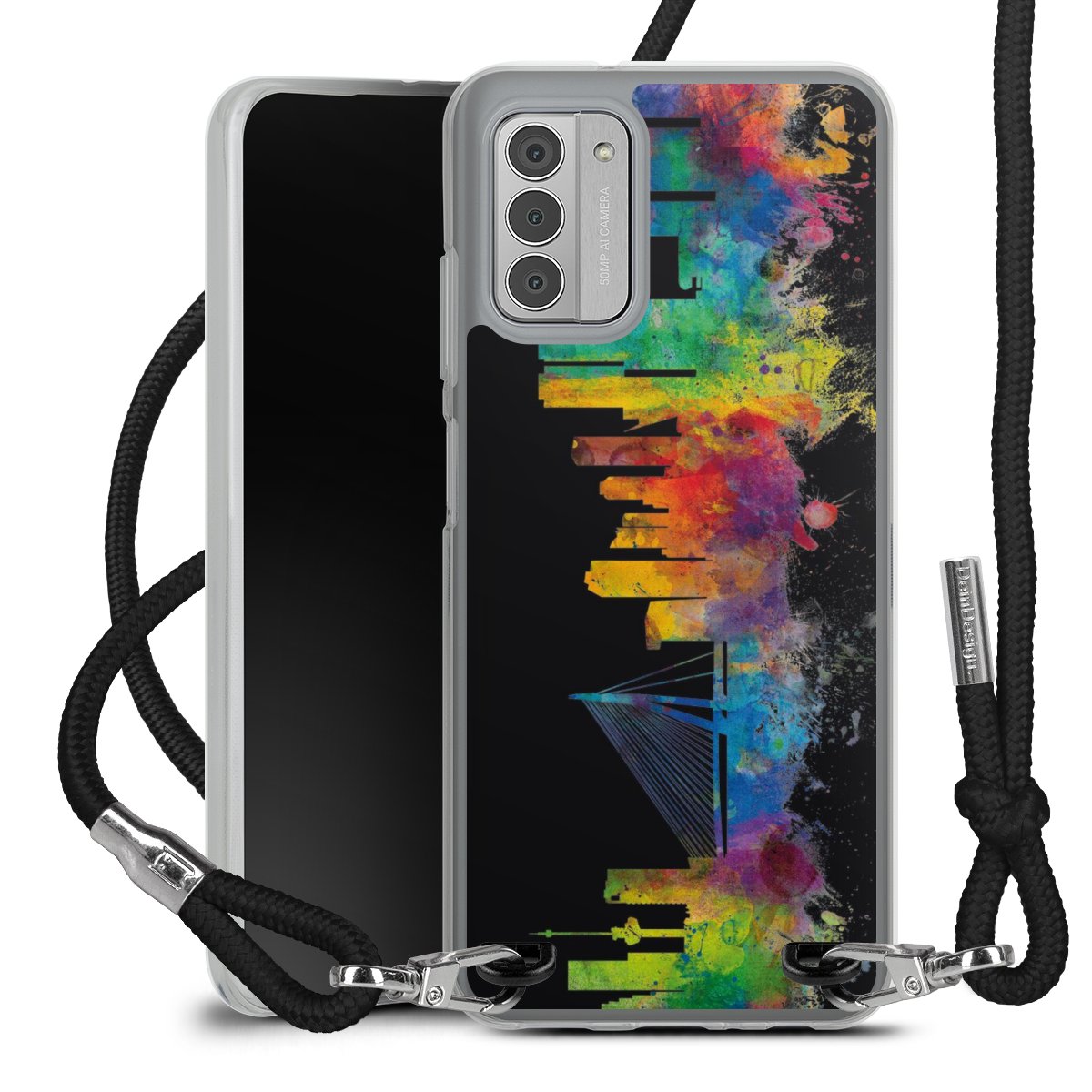 The flexible case is made from a high quality TPU material (thermoplastic Polyurethan). Thanks to its long-lasting and break resistant characteristics, the case is flexible yet consistent in form and has a great grip and feel. The textile strap made from Polyester gives a chic yet casual accent allowing you to carry your phone like a bag or necklace - a practical gadget perfect for your next adventure. The textile strap is about 1.70 meters long and the length can easily be adjusted through the knots. Our Carry Case is available in black, red, pink, grey, mustard, dark green and royal blue. We added a metal fastening to give the product an elegant touch. The ends of the textile strap are covered with metallic end caps to protect them against fraying.