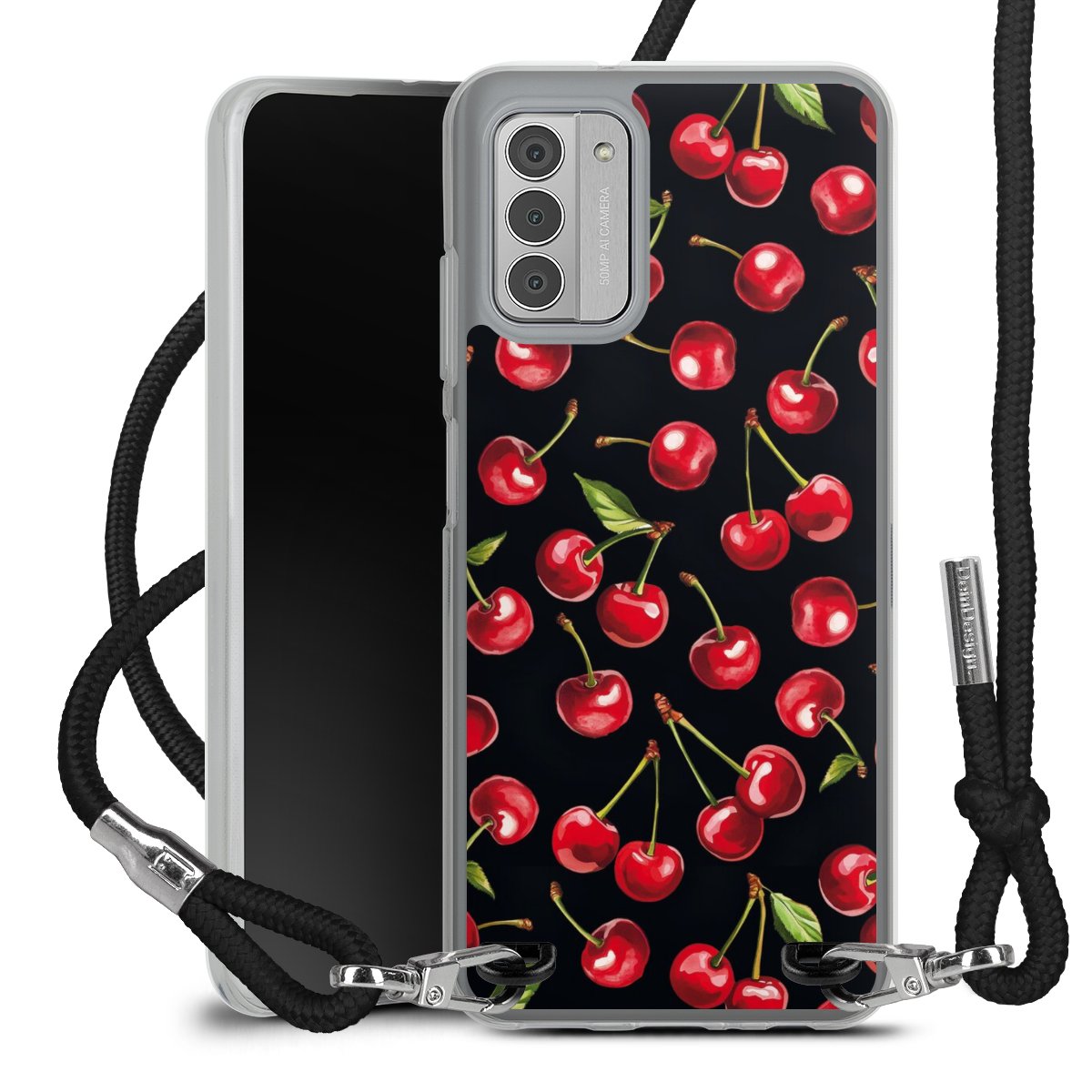 Keep your phone handy at all times, thanks to the flexible silicone case with a textile strap.