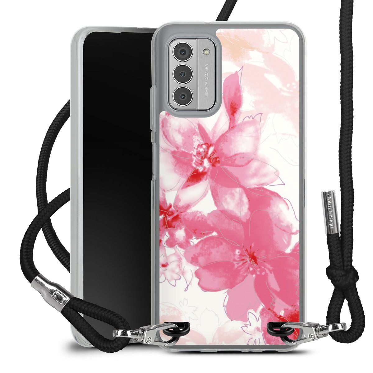 Keep your phone handy at all times, thanks to the flexible silicone case with a textile strap.