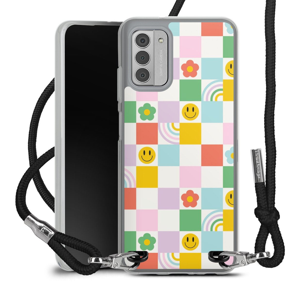 Keep your phone handy at all times, thanks to the flexible silicone case with a textile strap.