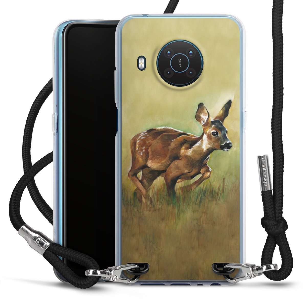 Keep your phone handy at all times, thanks to the flexible silicone case with a textile strap.
