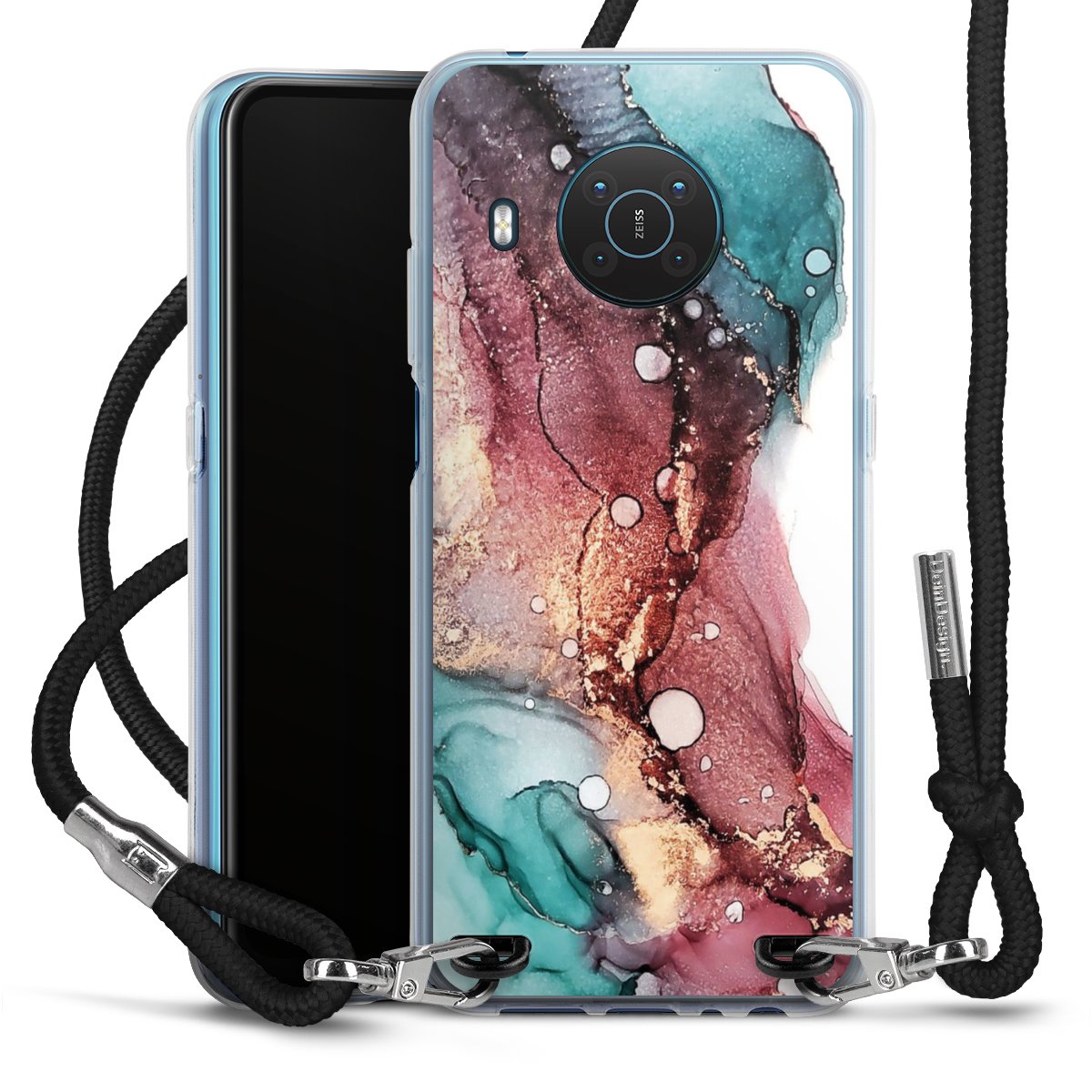 The flexible case is made from a high quality TPU material (thermoplastic Polyurethan). Thanks to its long-lasting and break resistant characteristics, the case is flexible yet consistent in form and has a great grip and feel. The textile strap made from Polyester gives a chic yet casual accent allowing you to carry your phone like a bag or necklace - a practical gadget perfect for your next adventure. The textile strap is about 1.70 meters long and the length can easily be adjusted through the knots. Our Carry Case is available in black, red, pink, grey, mustard, dark green and royal blue. We added a metal fastening to give the product an elegant touch. The ends of the textile strap are covered with metallic end caps to protect them against fraying.