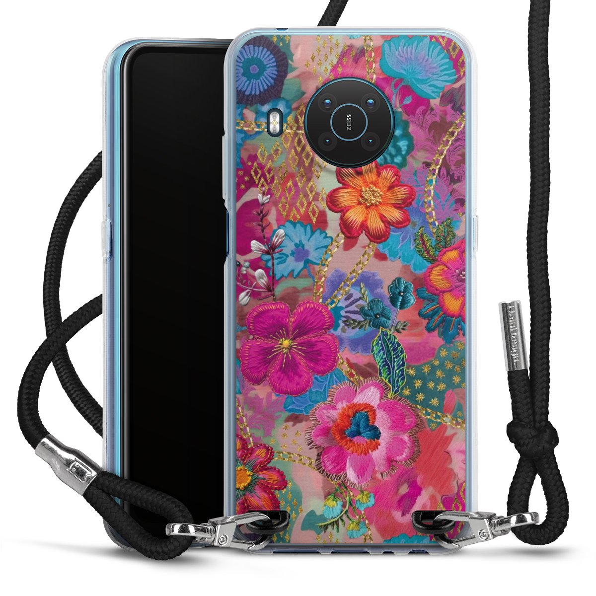 The flexible case is made from a high quality TPU material (thermoplastic Polyurethan). Thanks to its long-lasting and break resistant characteristics, the case is flexible yet consistent in form and has a great grip and feel. The textile strap made from Polyester gives a chic yet casual accent allowing you to carry your phone like a bag or necklace - a practical gadget perfect for your next adventure. The textile strap is about 1.70 meters long and the length can easily be adjusted through the knots. Our Carry Case is available in black, red, pink, grey, mustard, dark green and royal blue. We added a metal fastening to give the product an elegant touch. The ends of the textile strap are covered with metallic end caps to protect them against fraying.