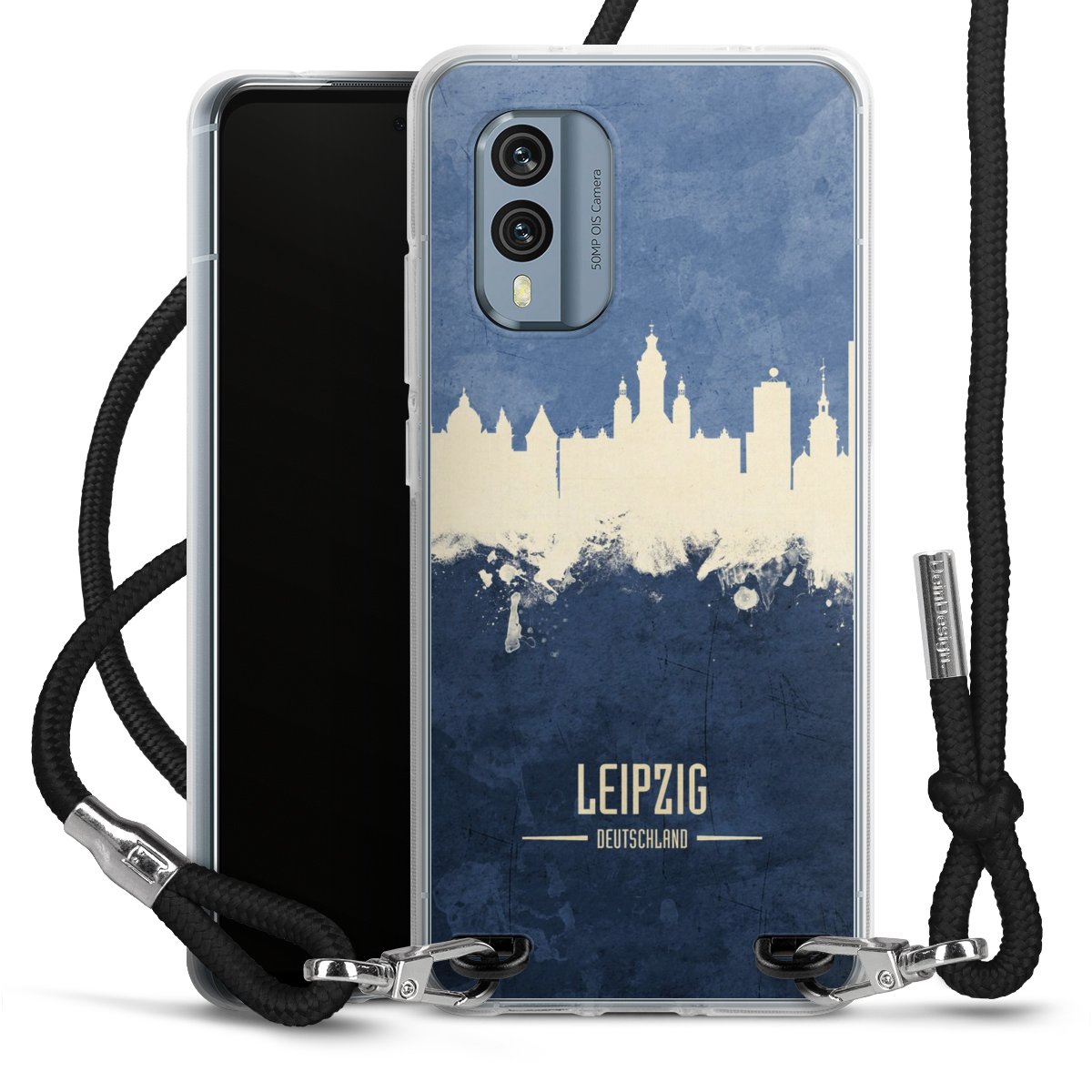 Keep your phone handy at all times, thanks to the flexible silicone case with a textile strap.
