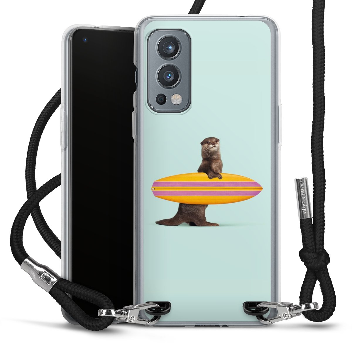 Keep your phone handy at all times, thanks to the flexible silicone case with a textile strap.