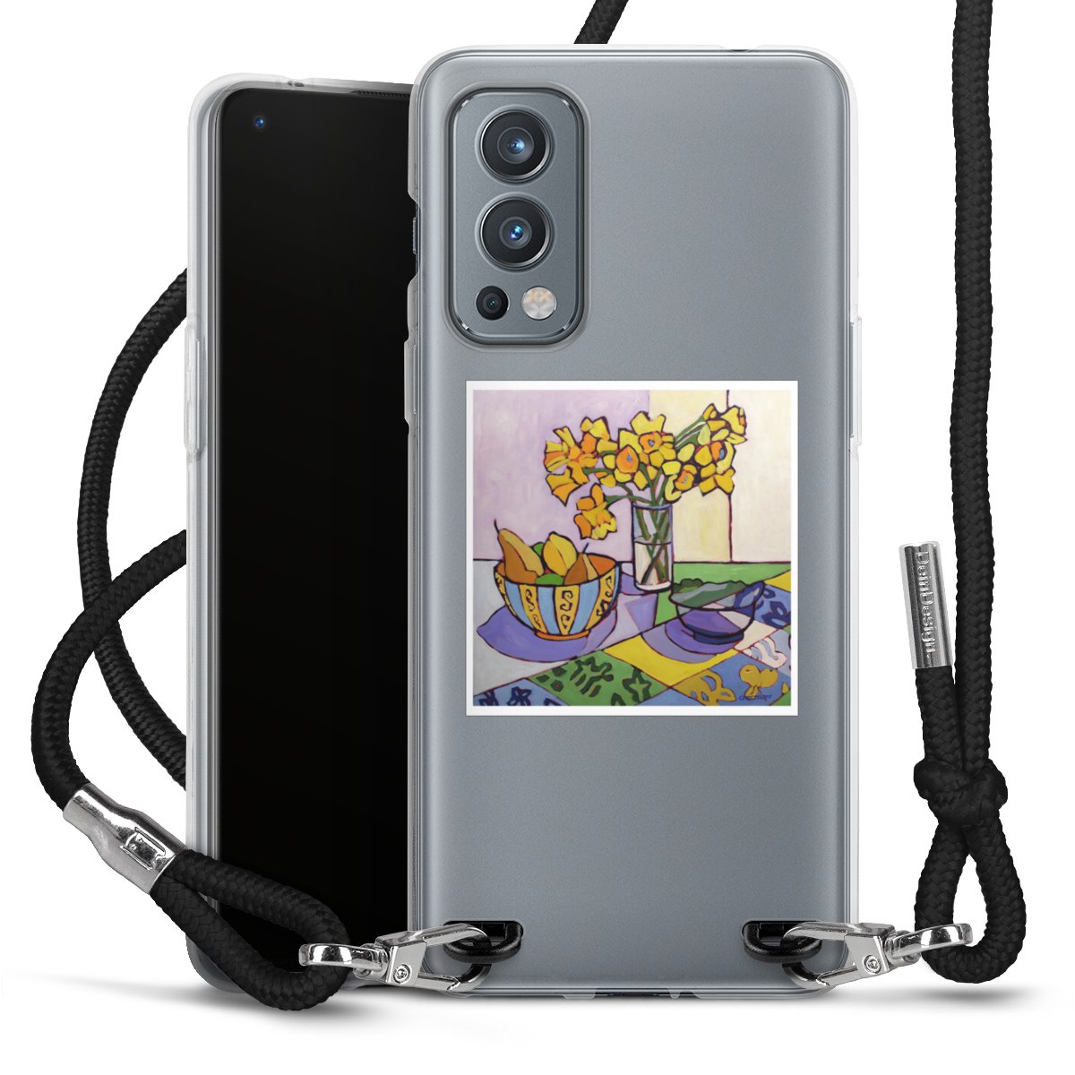 Keep your phone handy at all times, thanks to the flexible silicone case with a textile strap.