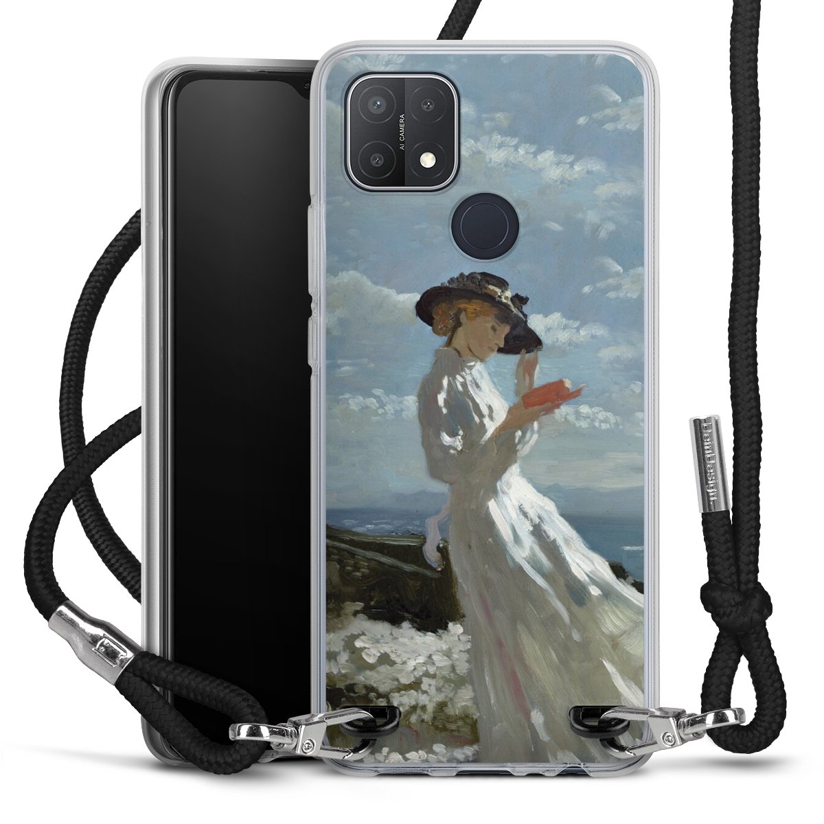 Keep your phone handy at all times, thanks to the flexible silicone case with a textile strap.