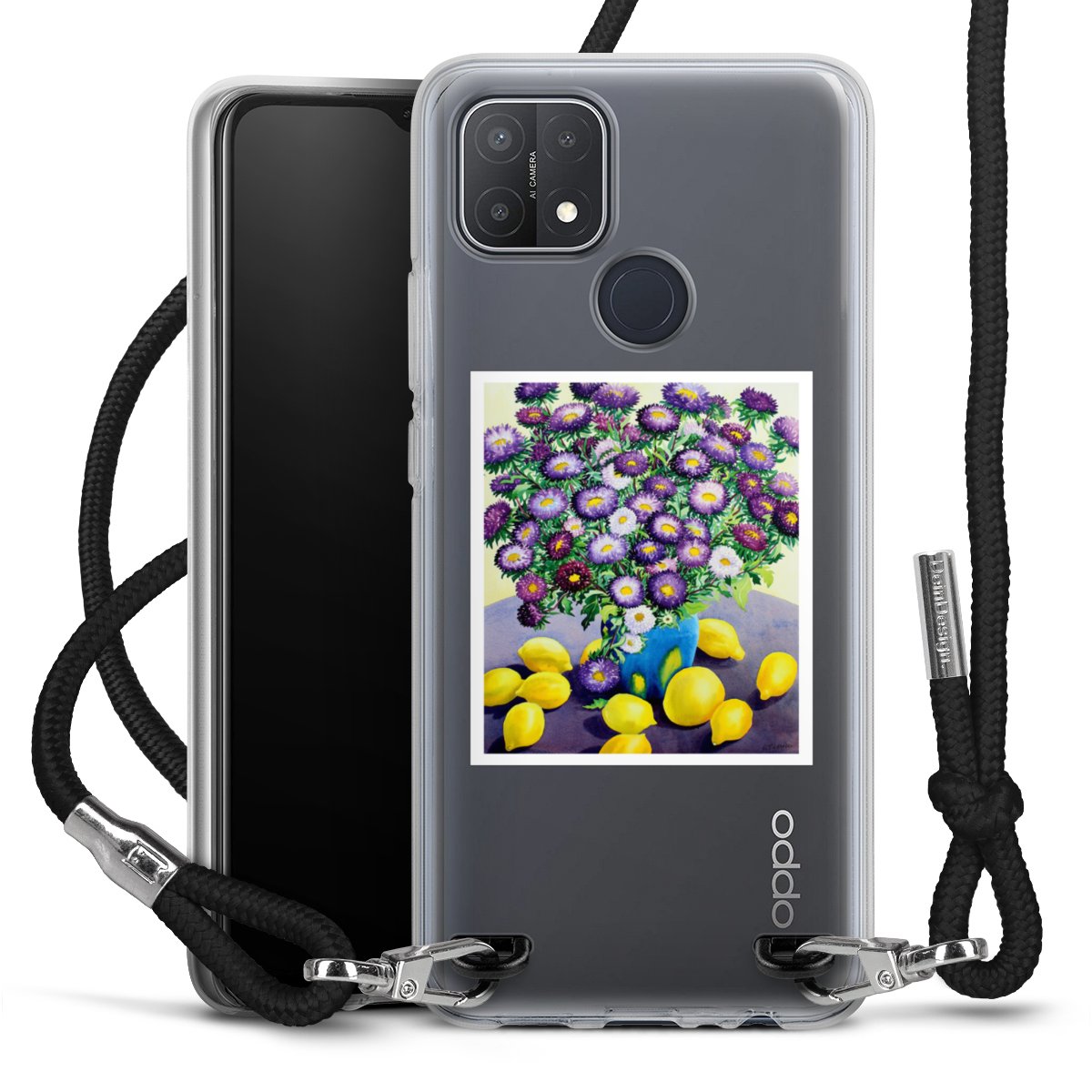 Keep your phone handy at all times, thanks to the flexible silicone case with a textile strap.
