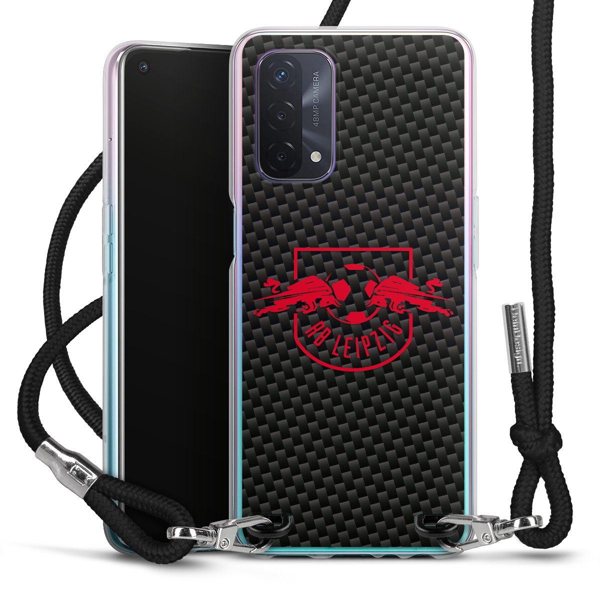 Red RB Leipzig logo on carbon look