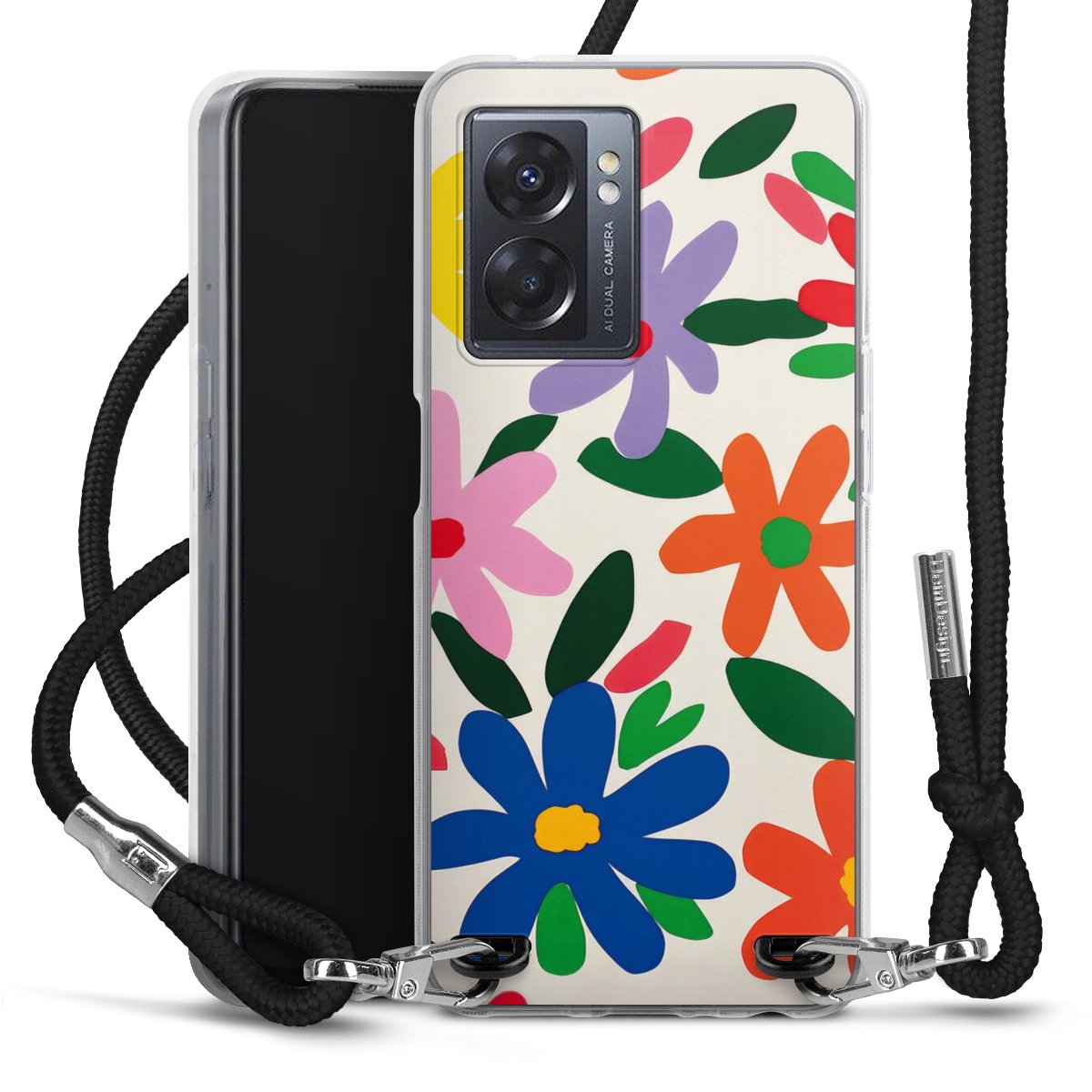 Keep your phone handy at all times, thanks to the flexible silicone case with a textile strap.