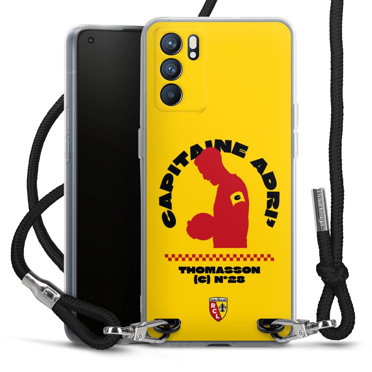 Keep your phone handy at all times, thanks to the flexible silicone case with a textile strap.