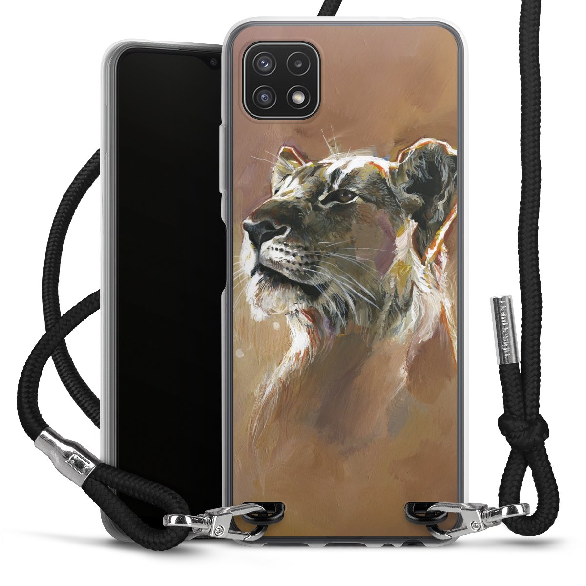 Keep your phone handy at all times, thanks to the flexible silicone case with a textile strap.