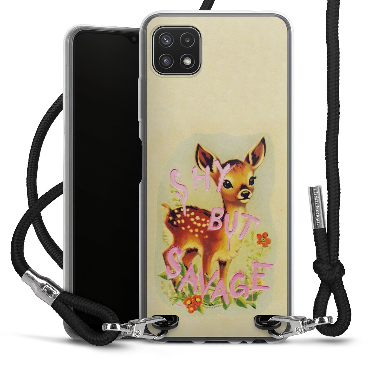 Keep your phone handy at all times, thanks to the flexible silicone case with a textile strap.