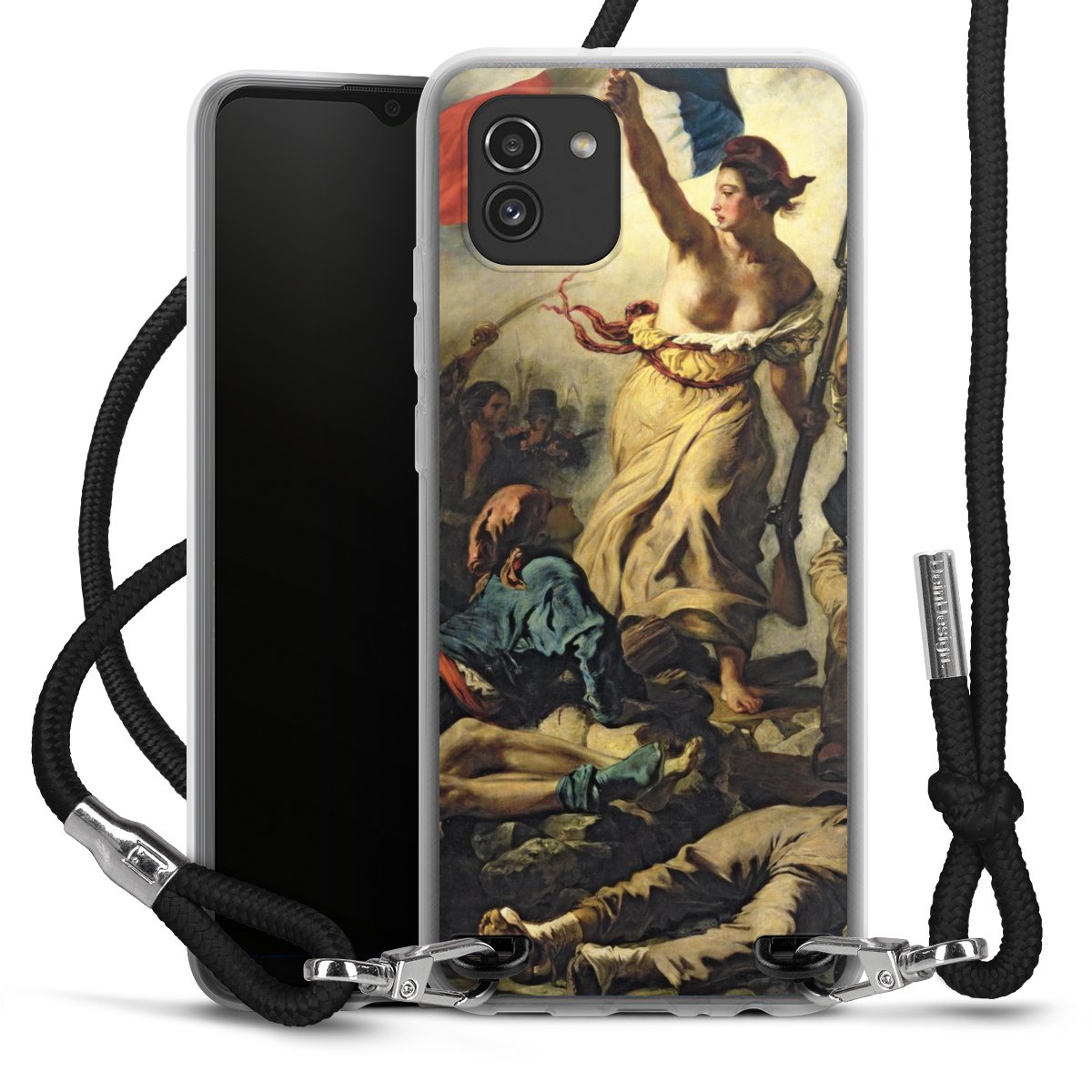 Keep your phone handy at all times, thanks to the flexible silicone case with a textile strap.