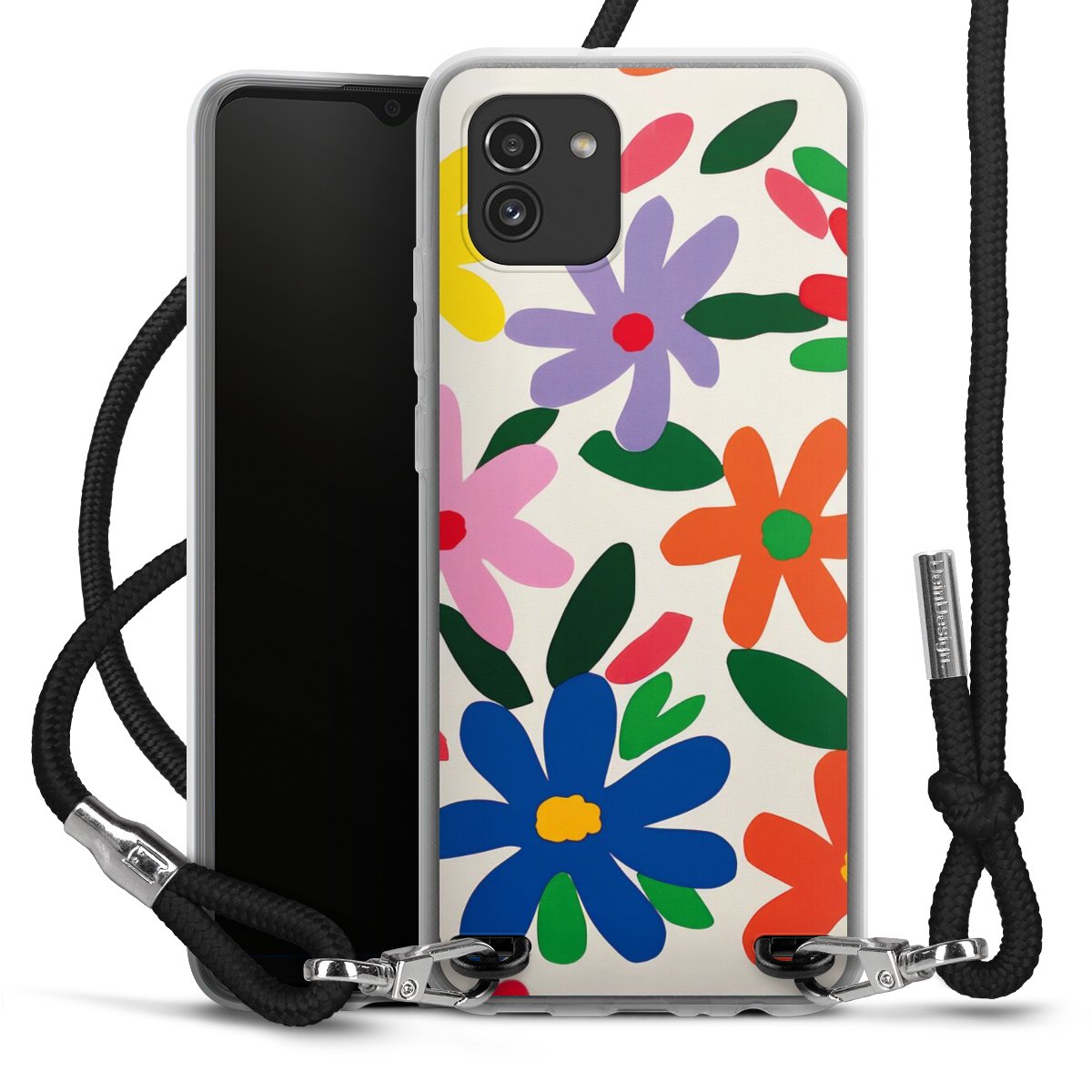 Keep your phone handy at all times, thanks to the flexible silicone case with a textile strap.