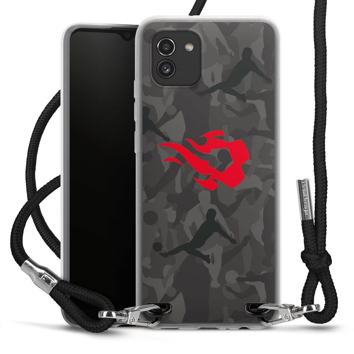 Keep your phone handy at all times, thanks to the flexible silicone case with a textile strap.