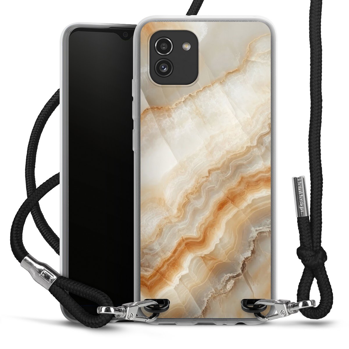 The flexible case is made from a high quality TPU material (thermoplastic Polyurethan). Thanks to its long-lasting and break resistant characteristics, the case is flexible yet consistent in form and has a great grip and feel. The textile strap made from Polyester gives a chic yet casual accent allowing you to carry your phone like a bag or necklace - a practical gadget perfect for your next adventure. The textile strap is about 1.70 meters long and the length can easily be adjusted through the knots. Our Carry Case is available in black, red, pink, grey, mustard, dark green and royal blue. We added a metal fastening to give the product an elegant touch. The ends of the textile strap are covered with metallic end caps to protect them against fraying.