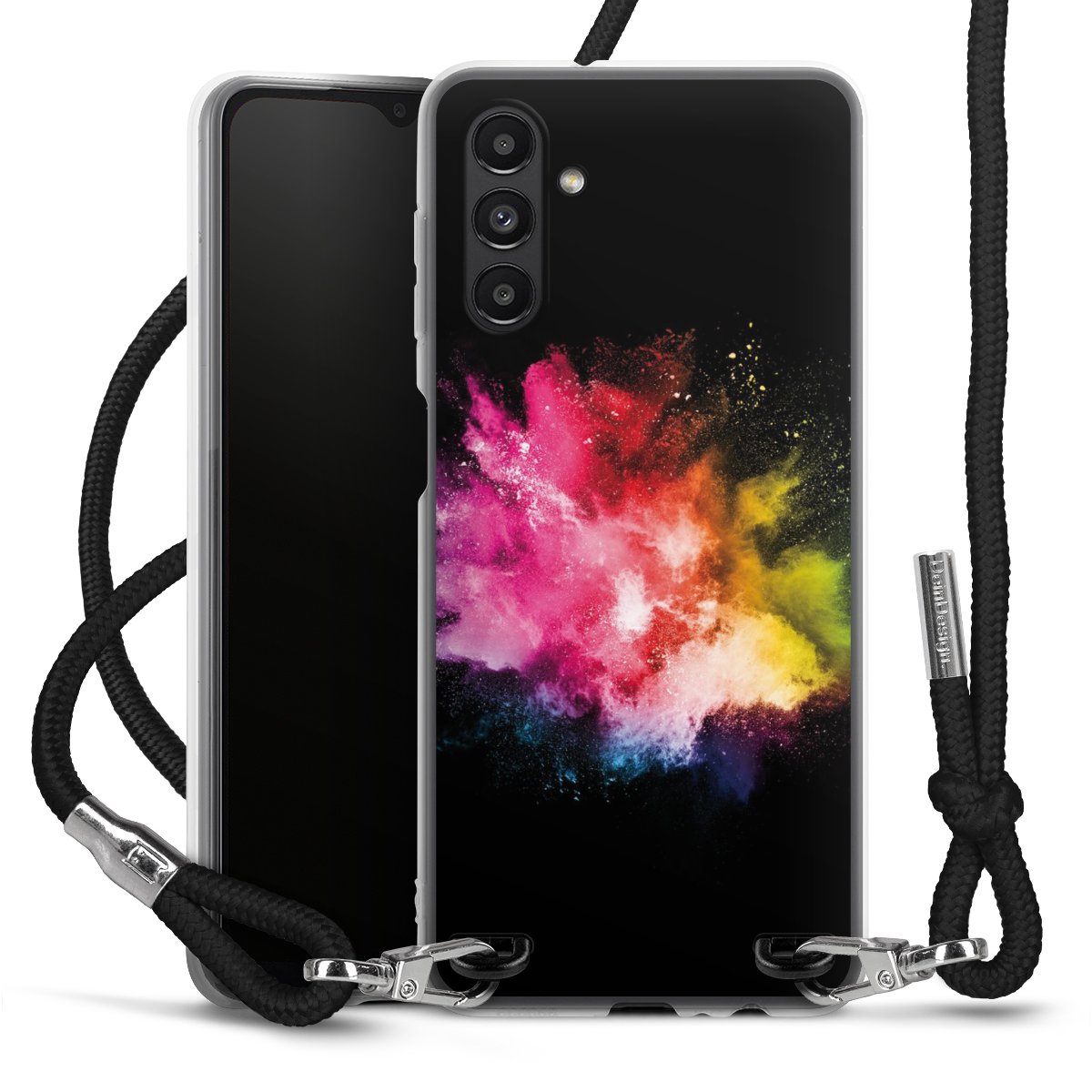 Keep your phone handy at all times, thanks to the flexible silicone case with a textile strap.