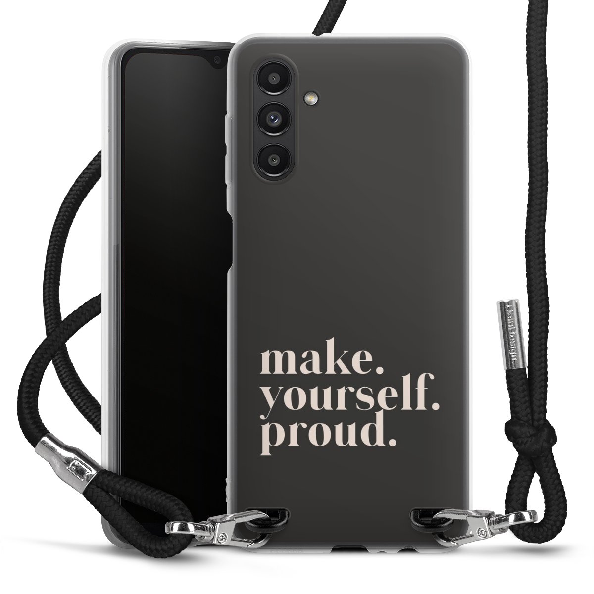 Keep your phone handy at all times, thanks to the flexible silicone case with a textile strap.