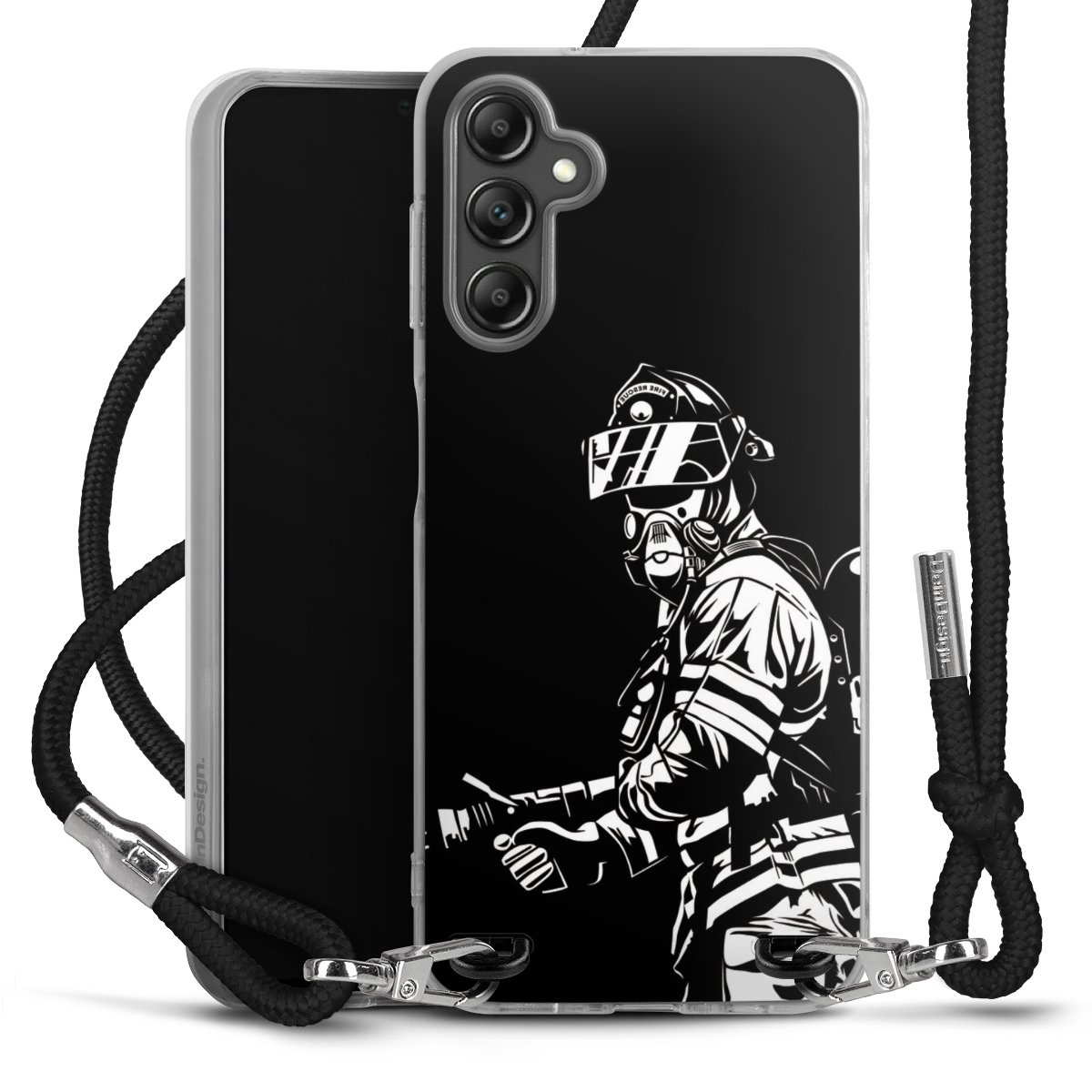 Keep your phone handy at all times, thanks to the flexible silicone case with a textile strap.