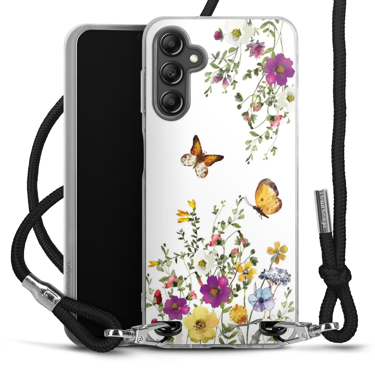 Keep your phone handy at all times, thanks to the flexible silicone case with a textile strap.
