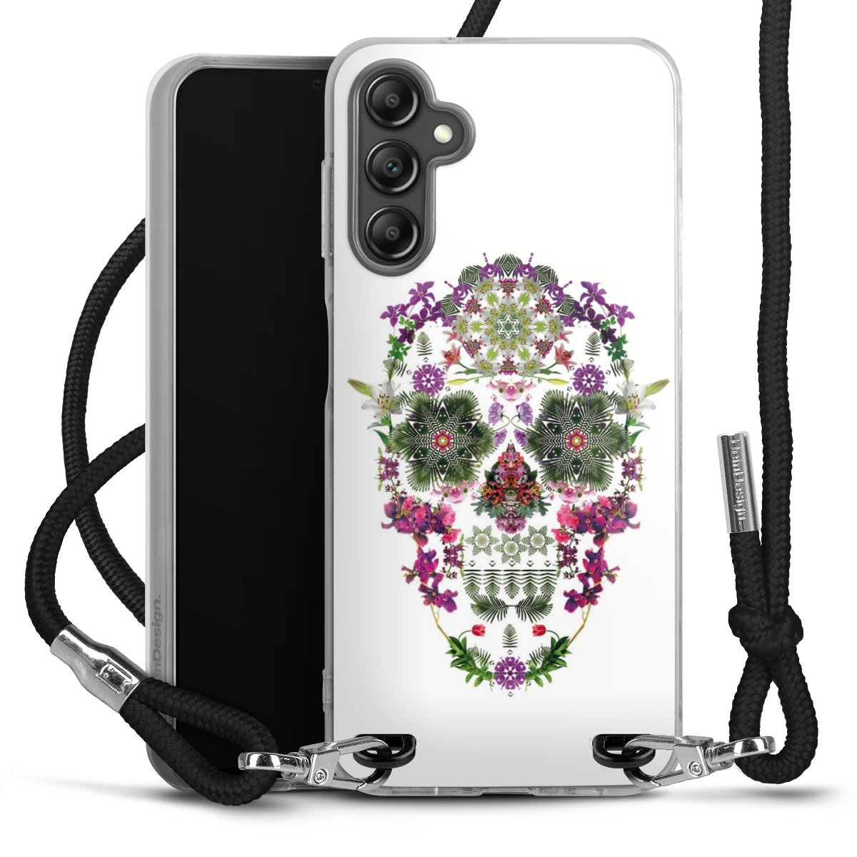 For our Carry Case we are using our advanced direct printing technology. The backside is fully printable, the frame is left unprinted. You can order the phone case without print, printed completely or also with a partial print. Choose one of our exclusive, pre-made shop designs or let your creativity shine and create your very own unique design with your pictures, overlays and text.
