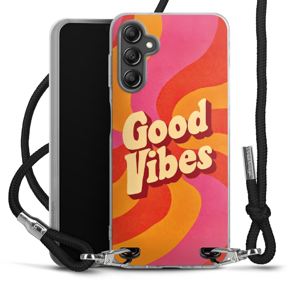 Keep your phone handy at all times, thanks to the flexible silicone case with a textile strap.
