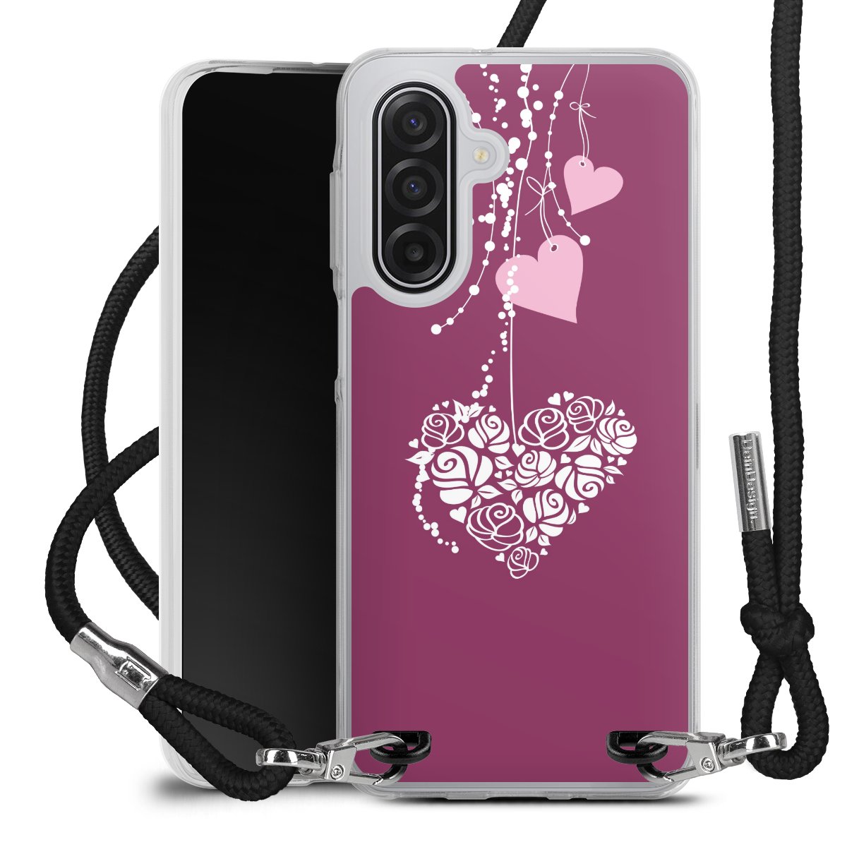 Keep your phone handy at all times, thanks to the flexible silicone case with a textile strap.