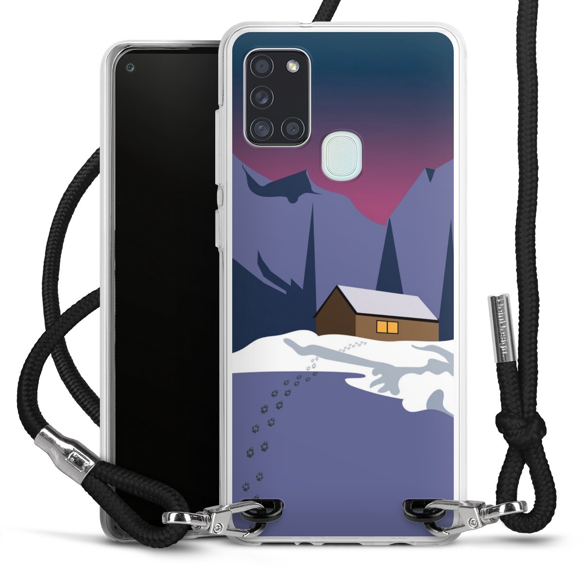 Keep your phone handy at all times, thanks to the flexible silicone case with a textile strap.