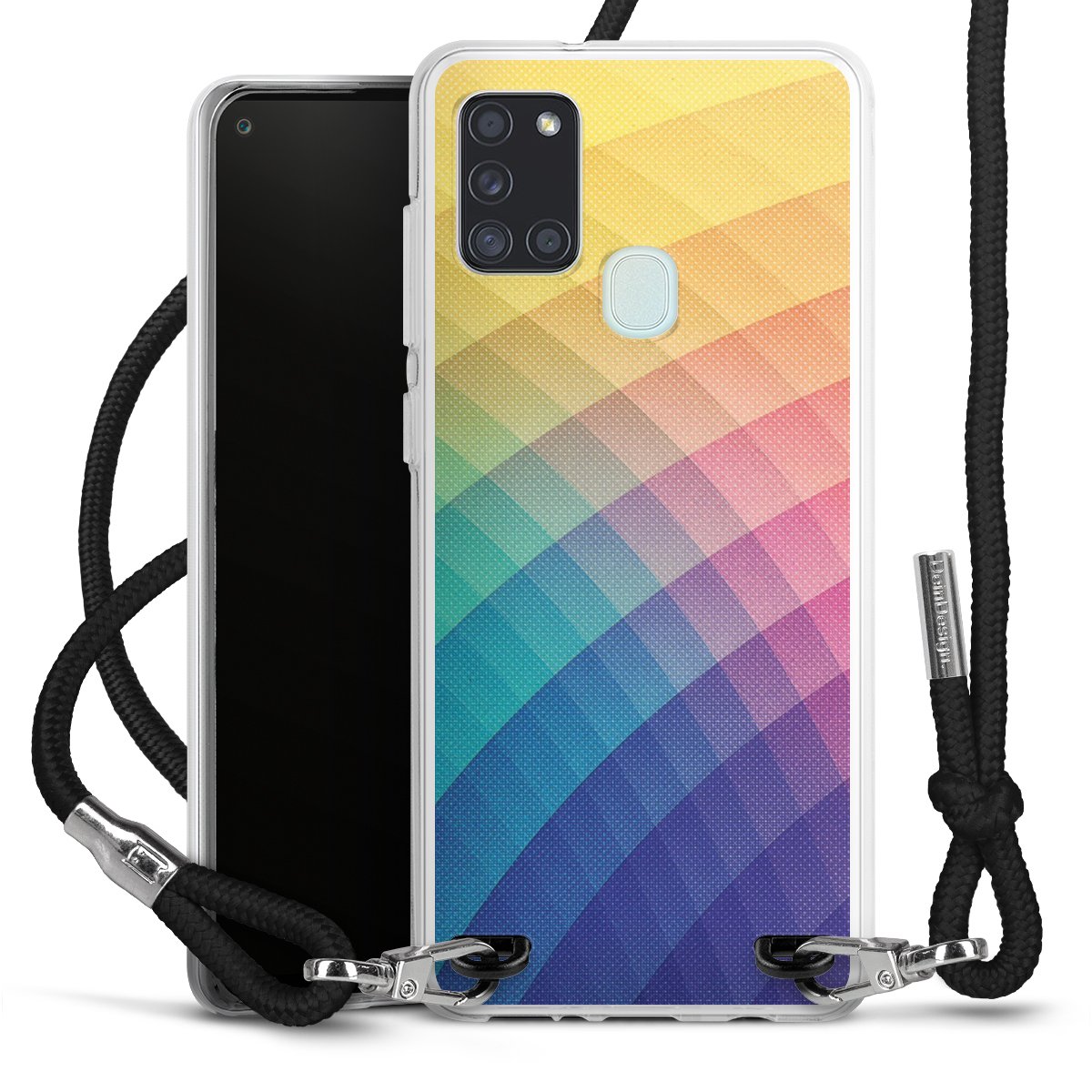 The flexible case is made from a high quality TPU material (thermoplastic Polyurethan). Thanks to its long-lasting and break resistant characteristics, the case is flexible yet consistent in form and has a great grip and feel. The textile strap made from Polyester gives a chic yet casual accent allowing you to carry your phone like a bag or necklace - a practical gadget perfect for your next adventure. The textile strap is about 1.70 meters long and the length can easily be adjusted through the knots. Our Carry Case is available in black, red, pink, grey, mustard, dark green and royal blue. We added a metal fastening to give the product an elegant touch. The ends of the textile strap are covered with metallic end caps to protect them against fraying.