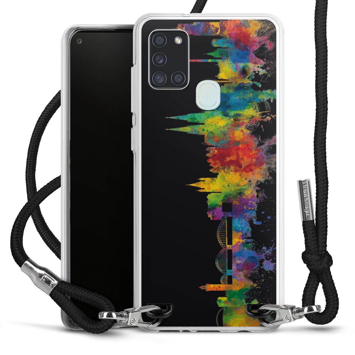 For our Carry Case we are using our advanced direct printing technology. The backside is fully printable, the frame is left unprinted. You can order the phone case without print, printed completely or also with a partial print. Choose one of our exclusive, pre-made shop designs or let your creativity shine and create your very own unique design with your pictures, overlays and text.