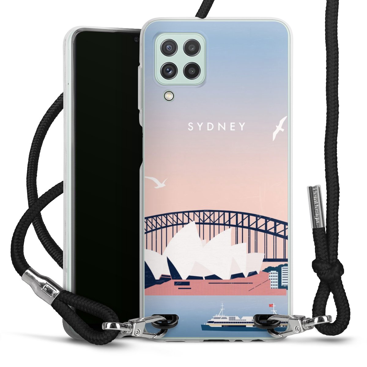 Keep your phone handy at all times, thanks to the flexible silicone case with a textile strap.