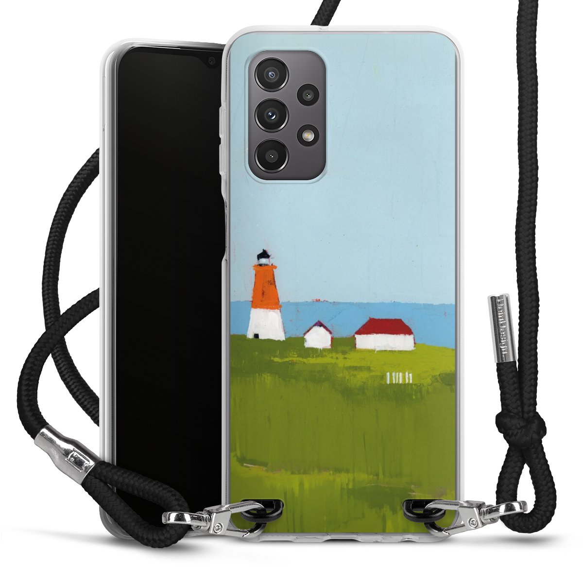 Keep your phone handy at all times, thanks to the flexible silicone case with a textile strap.