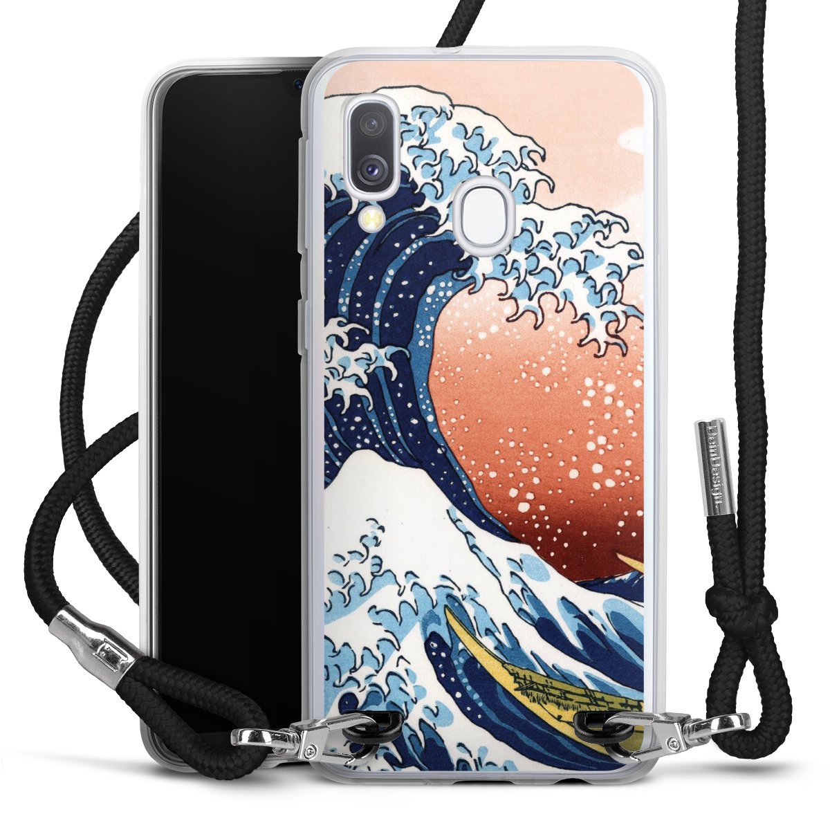 Keep your phone handy at all times, thanks to the flexible silicone case with a textile strap.