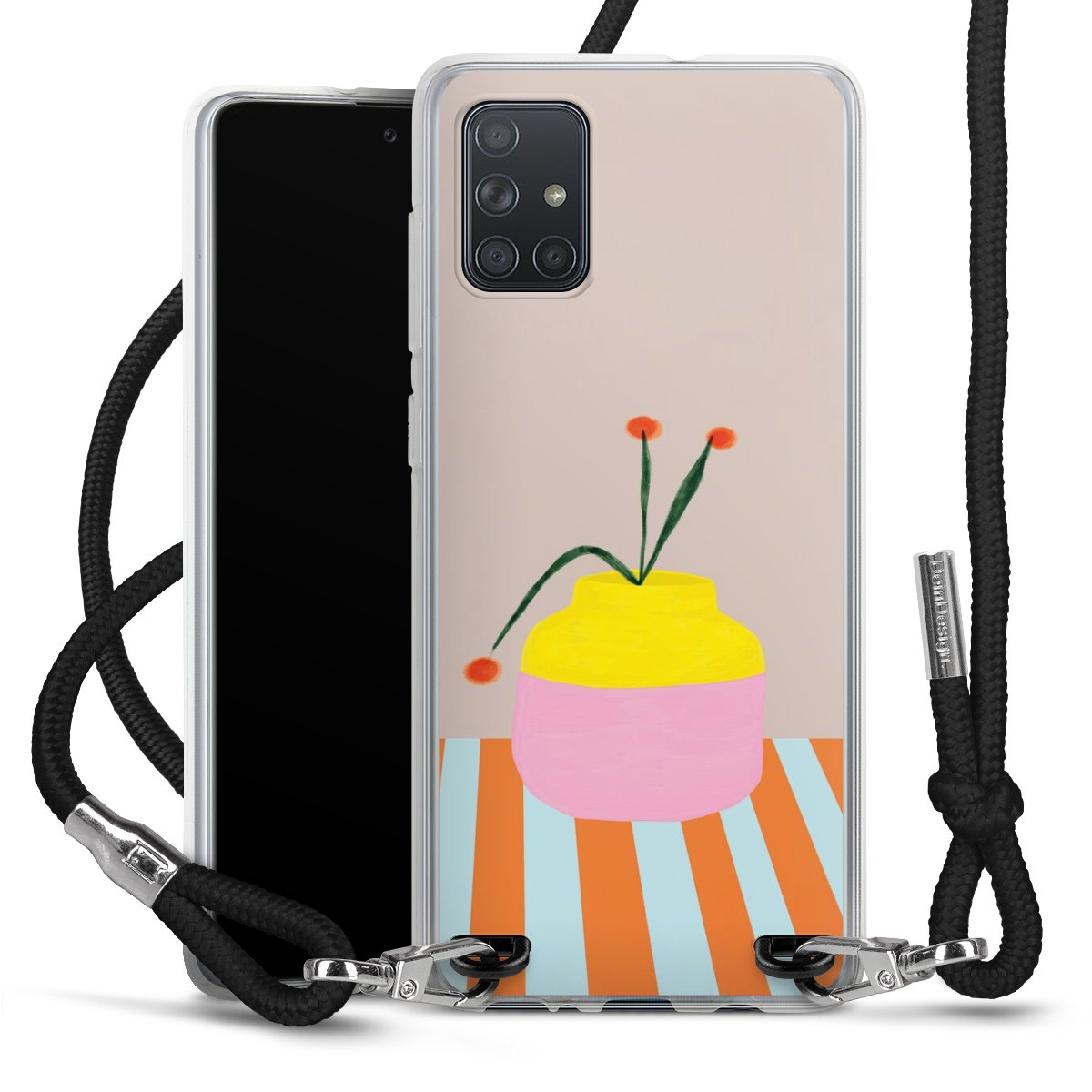 Keep your phone handy at all times, thanks to the flexible silicone case with a textile strap.