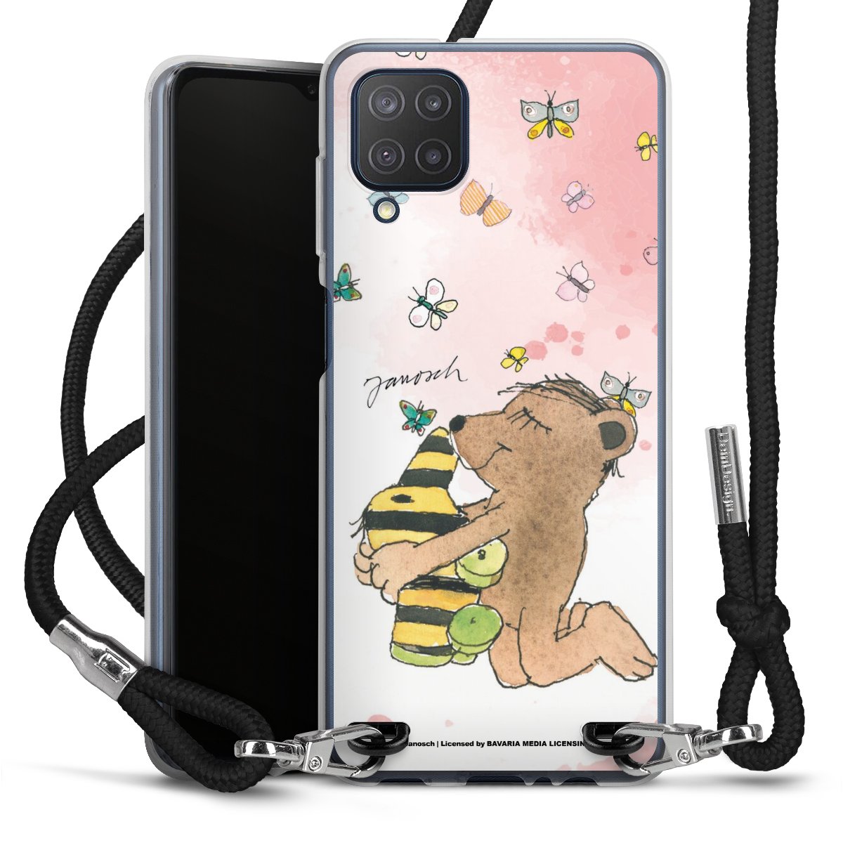 Keep your phone handy at all times, thanks to the flexible silicone case with a textile strap.