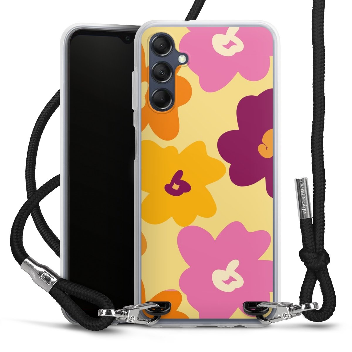 Keep your phone handy at all times, thanks to the flexible silicone case with a textile strap.