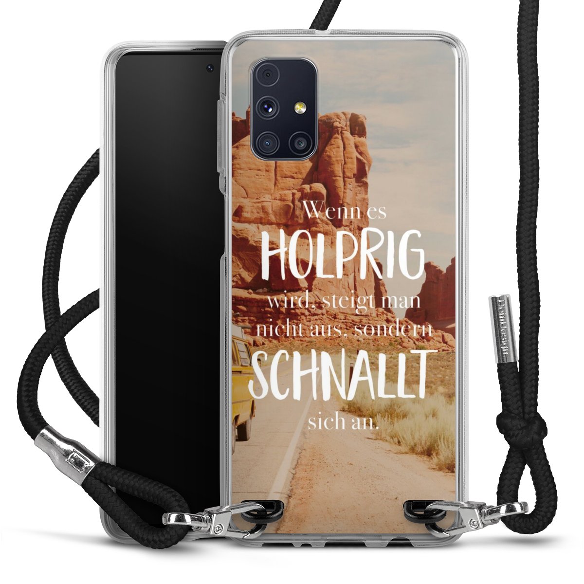 The flexible case is made from a high quality TPU material (thermoplastic Polyurethan). Thanks to its long-lasting and break resistant characteristics, the case is flexible yet consistent in form and has a great grip and feel. The textile strap made from Polyester gives a chic yet casual accent allowing you to carry your phone like a bag or necklace - a practical gadget perfect for your next adventure. The textile strap is about 1.70 meters long and the length can easily be adjusted through the knots. Our Carry Case is available in black, red, pink, grey, mustard, dark green and royal blue. We added a metal fastening to give the product an elegant touch. The ends of the textile strap are covered with metallic end caps to protect them against fraying.