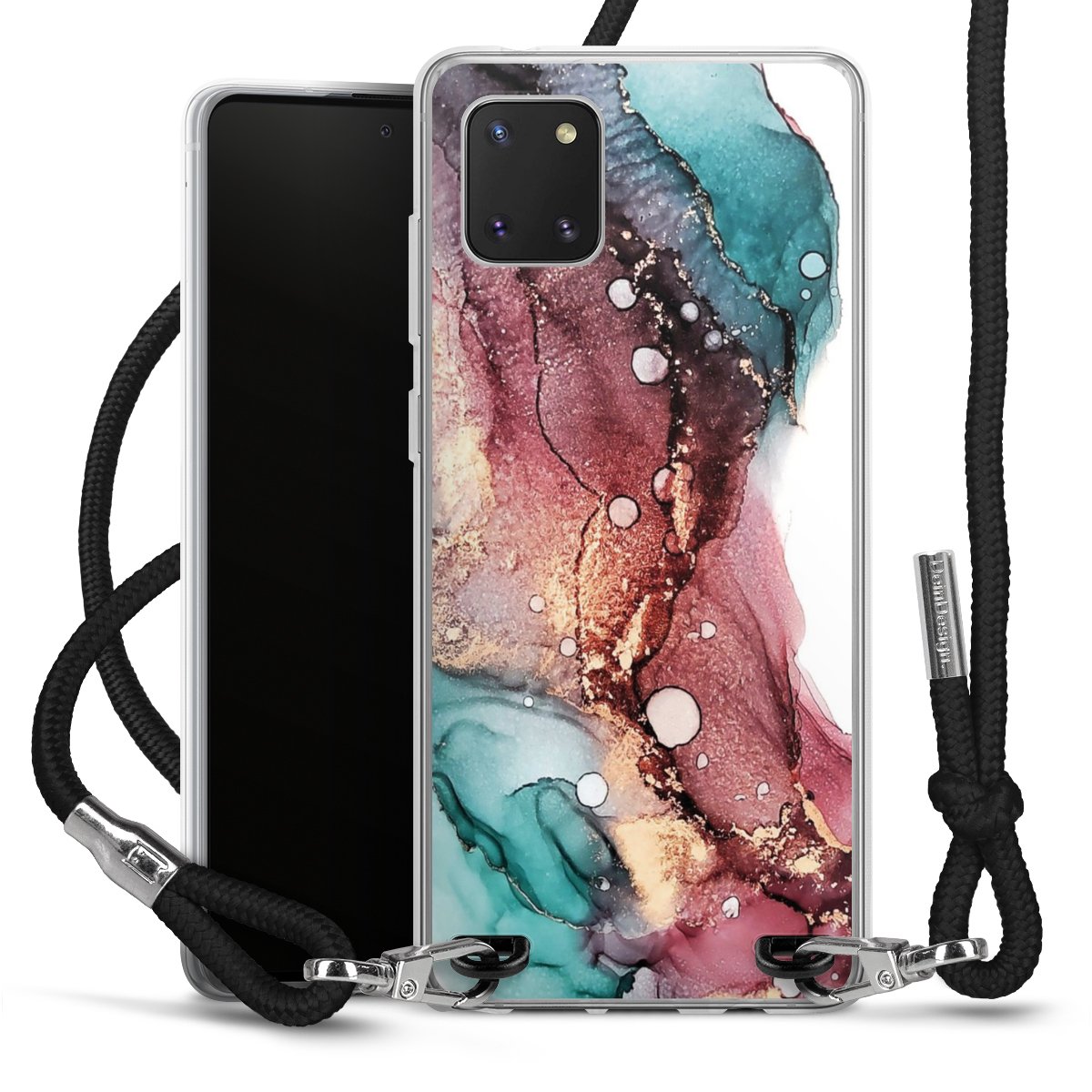 The flexible case is made from a high quality TPU material (thermoplastic Polyurethan). Thanks to its long-lasting and break resistant characteristics, the case is flexible yet consistent in form and has a great grip and feel. The textile strap made from Polyester gives a chic yet casual accent allowing you to carry your phone like a bag or necklace - a practical gadget perfect for your next adventure. The textile strap is about 1.70 meters long and the length can easily be adjusted through the knots. Our Carry Case is available in black, red, pink, grey, mustard, dark green and royal blue. We added a metal fastening to give the product an elegant touch. The ends of the textile strap are covered with metallic end caps to protect them against fraying.