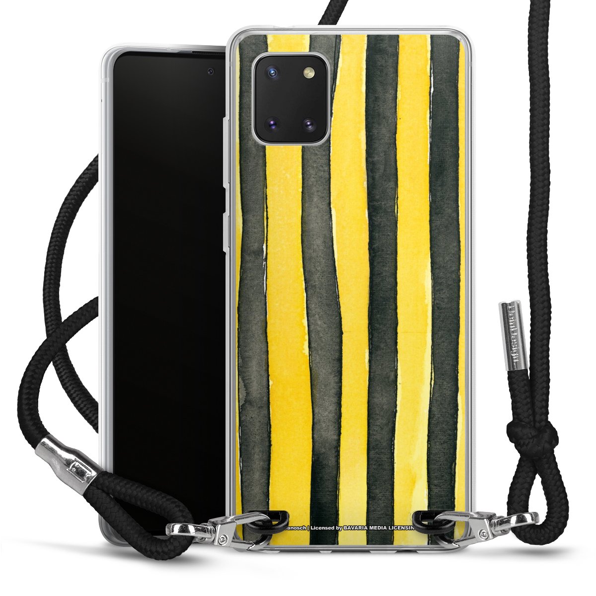 The flexible case is made from a high quality TPU material (thermoplastic Polyurethan). Thanks to its long-lasting and break resistant characteristics, the case is flexible yet consistent in form and has a great grip and feel. The textile strap made from Polyester gives a chic yet casual accent allowing you to carry your phone like a bag or necklace - a practical gadget perfect for your next adventure. The textile strap is about 1.70 meters long and the length can easily be adjusted through the knots. Our Carry Case is available in black, red, pink, grey, mustard, dark green and royal blue. We added a metal fastening to give the product an elegant touch. The ends of the textile strap are covered with metallic end caps to protect them against fraying.