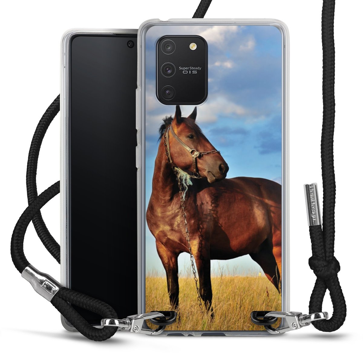 The flexible case is made from a high quality TPU material (thermoplastic Polyurethan). Thanks to its long-lasting and break resistant characteristics, the case is flexible yet consistent in form and has a great grip and feel. The textile strap made from Polyester gives a chic yet casual accent allowing you to carry your phone like a bag or necklace - a practical gadget perfect for your next adventure. The textile strap is about 1.70 meters long and the length can easily be adjusted through the knots. Our Carry Case is available in black, red, pink, grey, mustard, dark green and royal blue. We added a metal fastening to give the product an elegant touch. The ends of the textile strap are covered with metallic end caps to protect them against fraying.