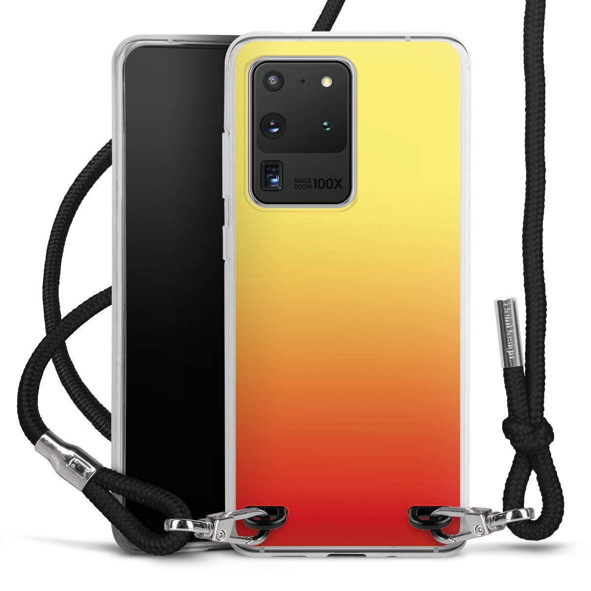 The flexible case is made from a high quality TPU material (thermoplastic Polyurethan). Thanks to its long-lasting and break resistant characteristics, the case is flexible yet consistent in form and has a great grip and feel. The textile strap made from Polyester gives a chic yet casual accent allowing you to carry your phone like a bag or necklace - a practical gadget perfect for your next adventure. The textile strap is about 1.70 meters long and the length can easily be adjusted through the knots. Our Carry Case is available in black, red, pink, grey, mustard, dark green and royal blue. We added a metal fastening to give the product an elegant touch. The ends of the textile strap are covered with metallic end caps to protect them against fraying.