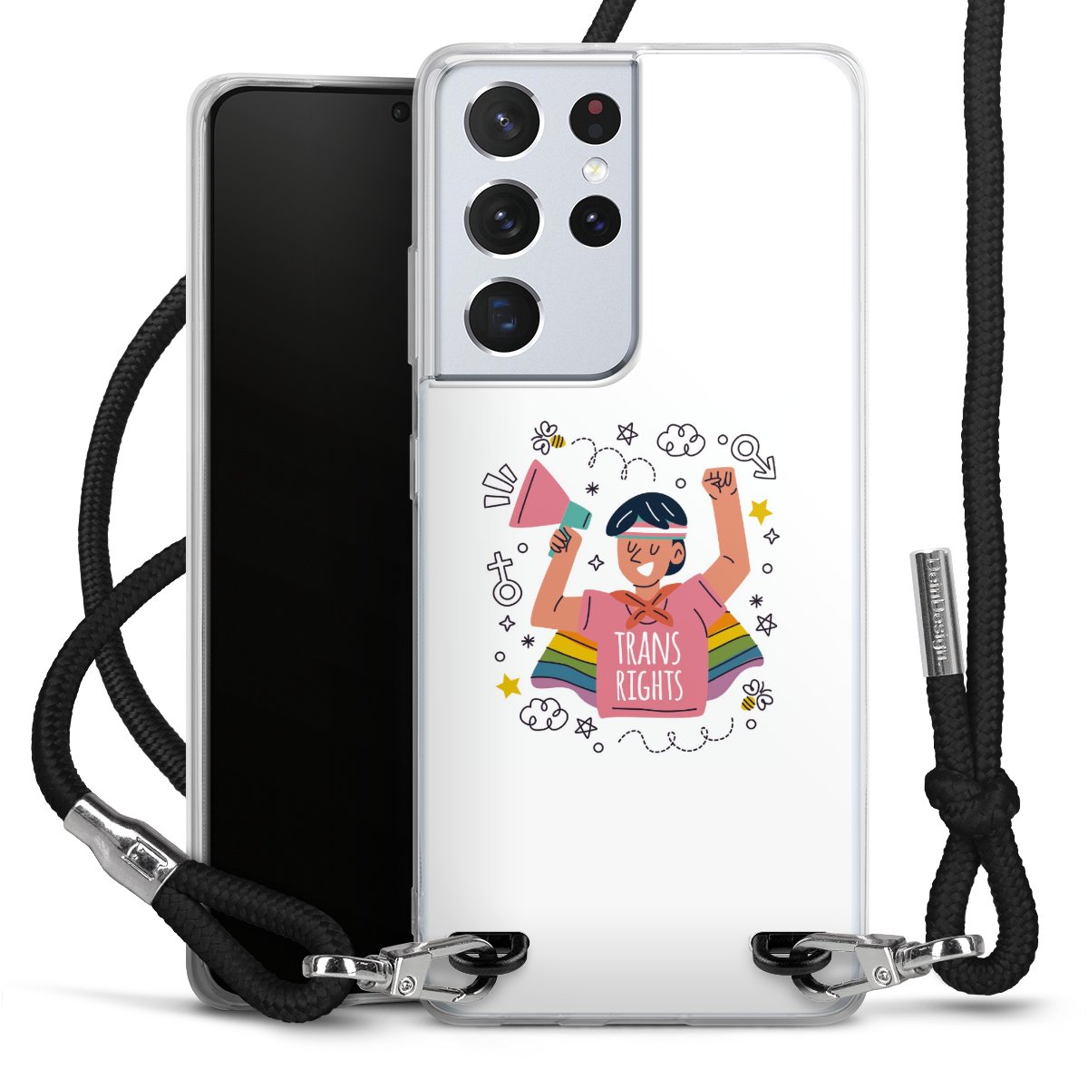 For our Carry Case we are using our advanced direct printing technology. The backside is fully printable, the frame is left unprinted. You can order the phone case without print, printed completely or also with a partial print. Choose one of our exclusive, pre-made shop designs or let your creativity shine and create your very own unique design with your pictures, overlays and text.