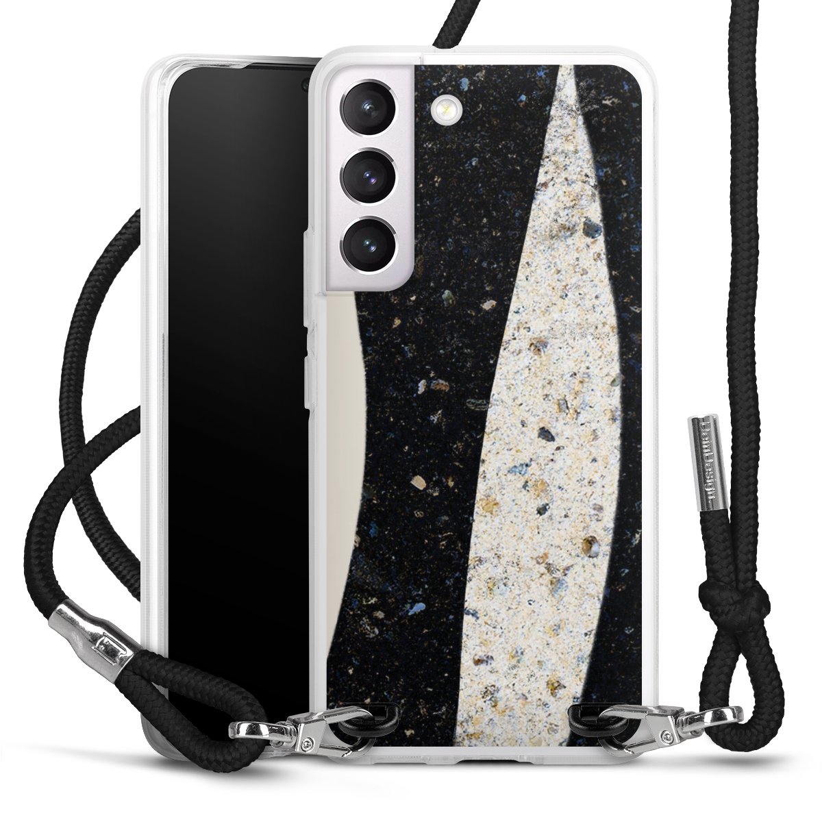 For our Carry Case we are using our advanced direct printing technology. The backside is fully printable, the frame is left unprinted. You can order the phone case without print, printed completely or also with a partial print. Choose one of our exclusive, pre-made shop designs or let your creativity shine and create your very own unique design with your pictures, overlays and text.