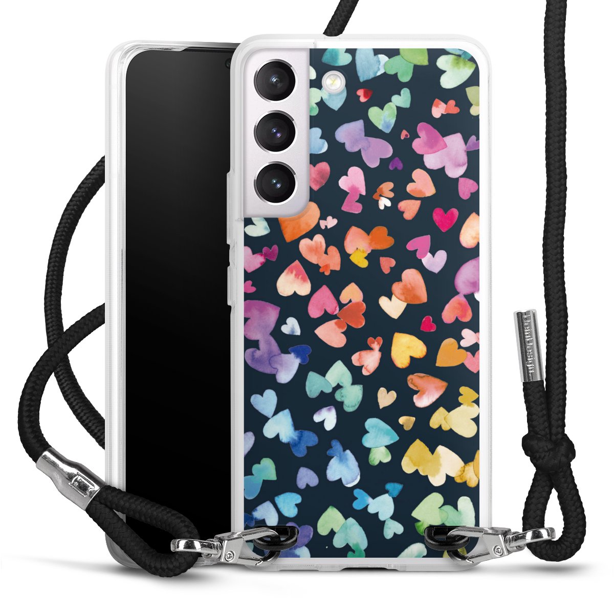 For our Carry Case we are using our advanced direct printing technology. The backside is fully printable, the frame is left unprinted. You can order the phone case without print, printed completely or also with a partial print. Choose one of our exclusive, pre-made shop designs or let your creativity shine and create your very own unique design with your pictures, overlays and text.