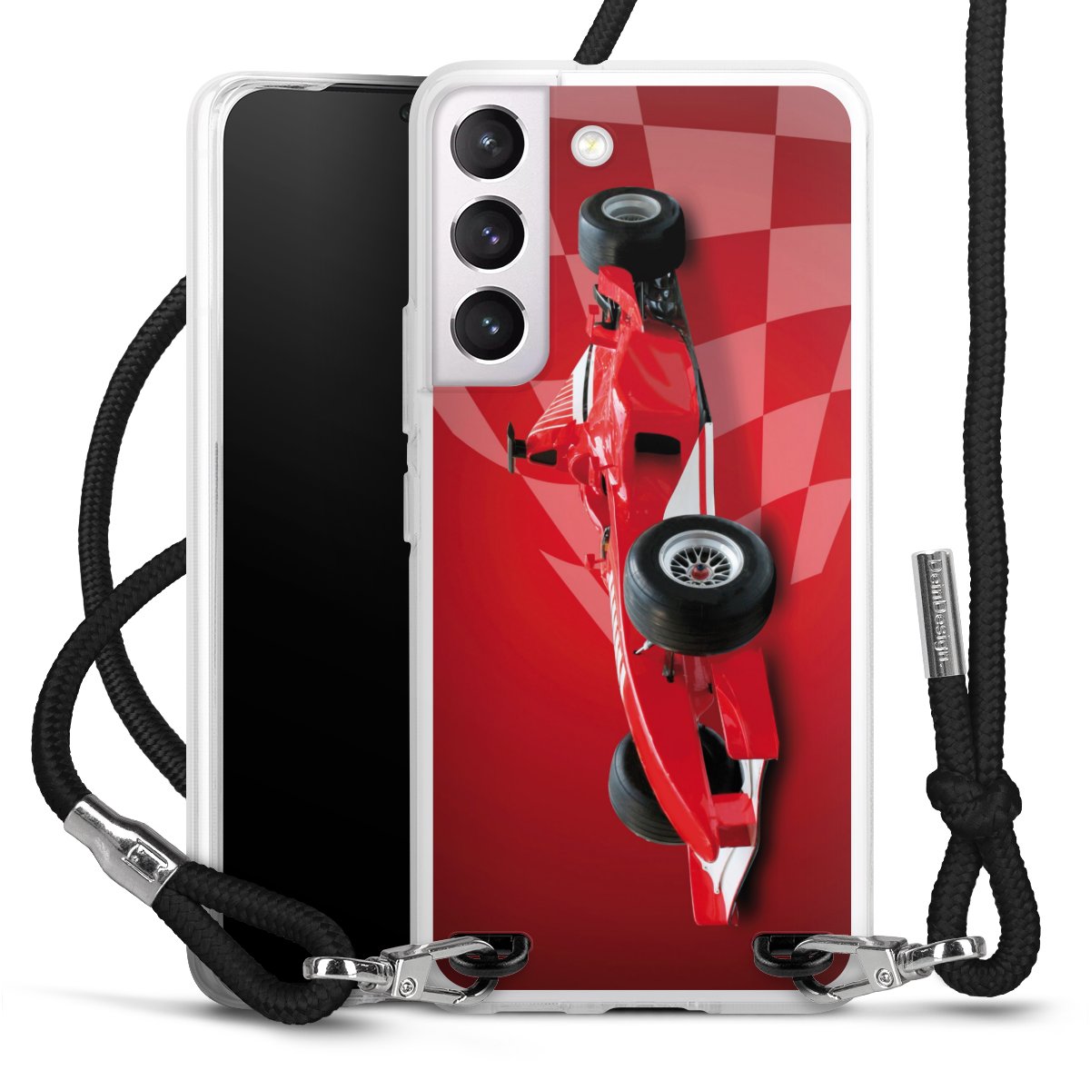 For our Carry Case we are using our advanced direct printing technology. The backside is fully printable, the frame is left unprinted. You can order the phone case without print, printed completely or also with a partial print. Choose one of our exclusive, pre-made shop designs or let your creativity shine and create your very own unique design with your pictures, overlays and text.